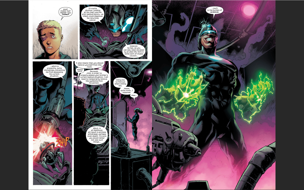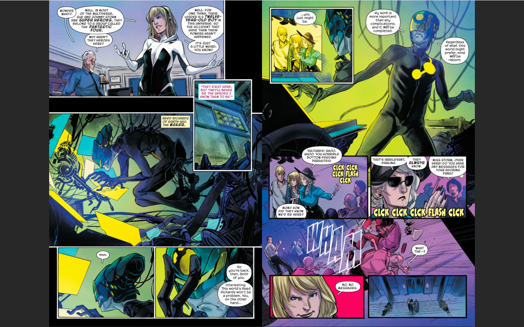 終極里德/造物者是我目前最喜歡的漫威反派,他不像末日博士或薩諾斯擁有自己的價值觀和行事準則,造物者毫無道德節操可言,他還擁有奇怪的幽默感,會不擇手段地達成自己的目標,他的動機或許並非純粹的邪惡,而是一種扭曲的理想主義。相比於前兩代終極蜘蛛人在混亂的終極宇宙仍抱持良善,造物者則是徹底的對立面,殘酷極端、權力機構伸出強大黑手干預的世界逼瘋了他,從一個飽受家庭暴力的天才科學家,墮落成一個跨越多元宇宙的威脅,橫跨超過 20 年的角色旅程充滿了矛盾和悲劇,但在我為了寫這篇文章而讀完幾乎所有的終極故事線後,造物者或許是對的,我幾乎認同他對於整個漫威作品的憎恨和報復,那個世界實在太糟了。造物者抵達 6160 宇宙後,他更加恣意地玩弄那些讓自己吃癟過的平行版角色,如尼克福瑞變成任他和造物者議會消遣的複製人玩物、出手干預驚奇四超人的誕生、折磨里德並將其改造成末日博士、把彼時打敗他的太陽黑子變成超能力電池、扶持邪神洛基成為阿斯嘉之王並囚禁索爾等,我想應該沒有讀者會認為目前的終極戰隊能打敗全盛狀態的造物者。
