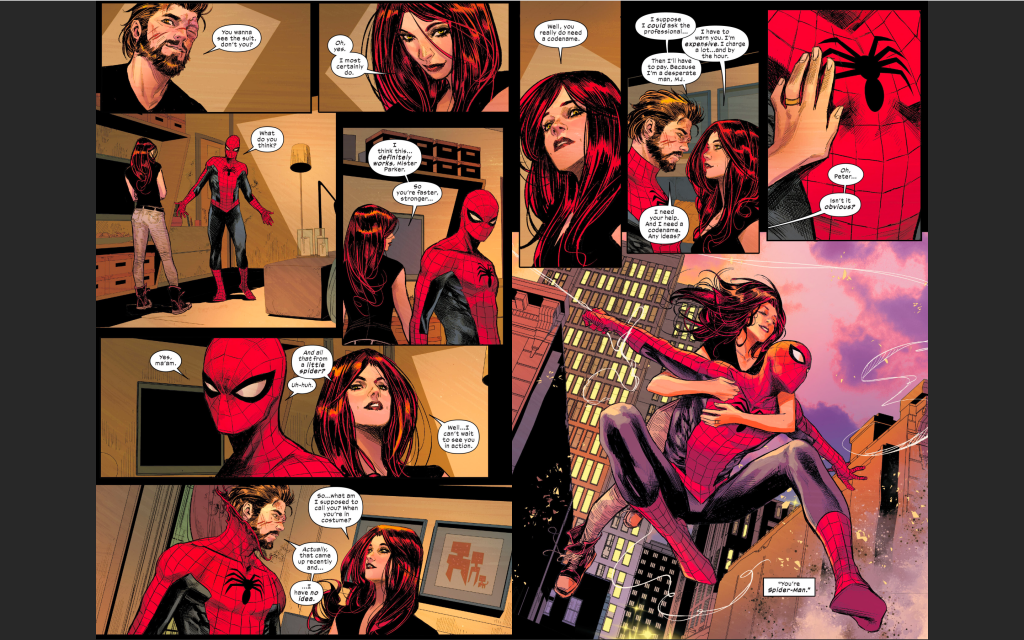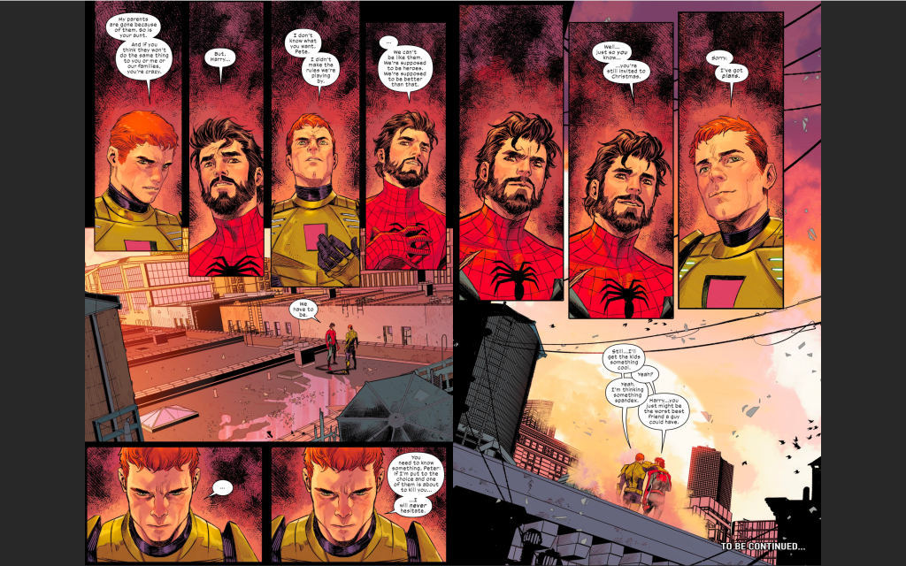 瑪莉珍的塑造也很精彩,展現出新時代女性的獨立與堅韌特質,讓人聯想到《絕命律師》中的金魏斯勒。這樣的角色刻劃與目前糟糕透頂的主宇宙《驚奇蜘蛛人》刊物形成強烈對比,這也是為何《終極蜘蛛人》格外受到讚賞和吹捧的原因,因為後者對於角色的詮釋令人不禁懷疑漫威編輯部的把關能力,漫威高層是被作家掌握了什麼把柄,才能任他糟蹋旗下最偉大的超級英雄。《終極蜘蛛人》打造出一個蜘蛛人粉絲夢寐以求的理想世界:年紀更長的彼得帕克擁有自己的家庭跟生活,班叔健在、詹姆森化身為慈愛的長輩,哈利奧斯朋也成為並肩作戰的戰友;值得玩味的是,經典台詞「能力越大,責任越大」是由哈利之口說出,但後續情節中對於反派的處置態度,可能會讓這對戰友分道揚鑣。